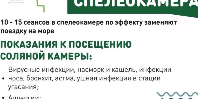 10 — 15 сеансов в спелеокамере по эффекту заменяют поездку на море